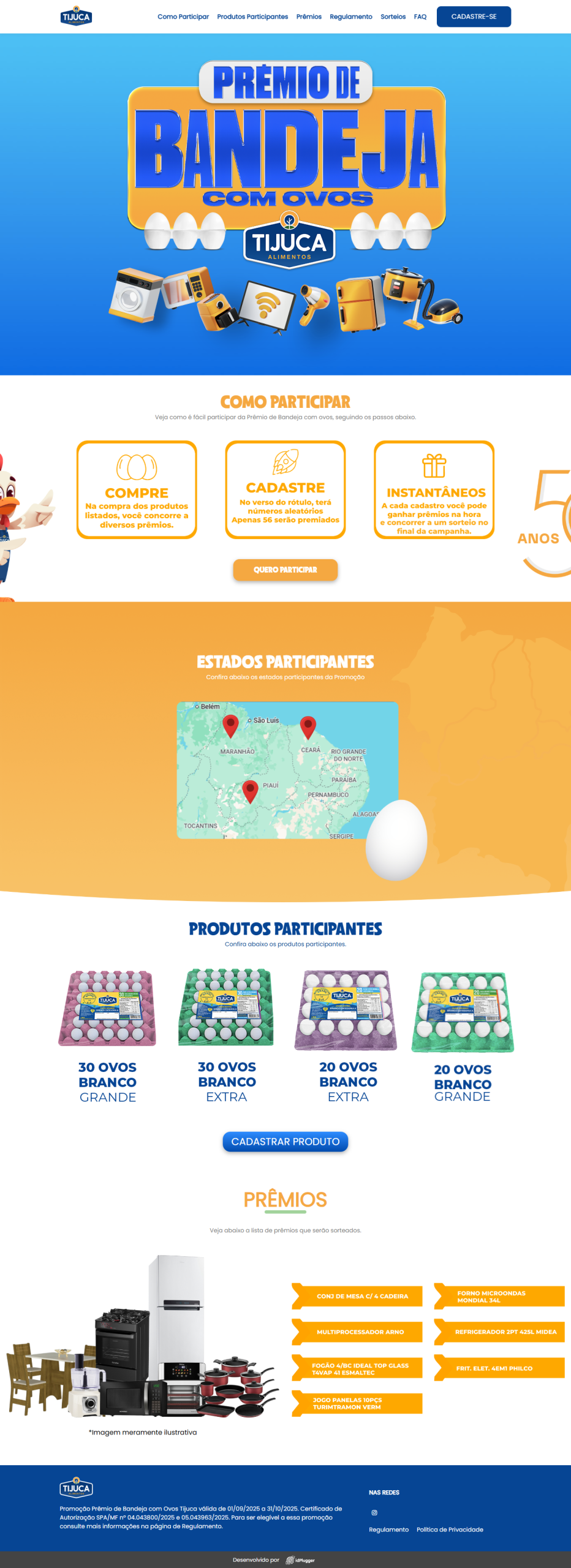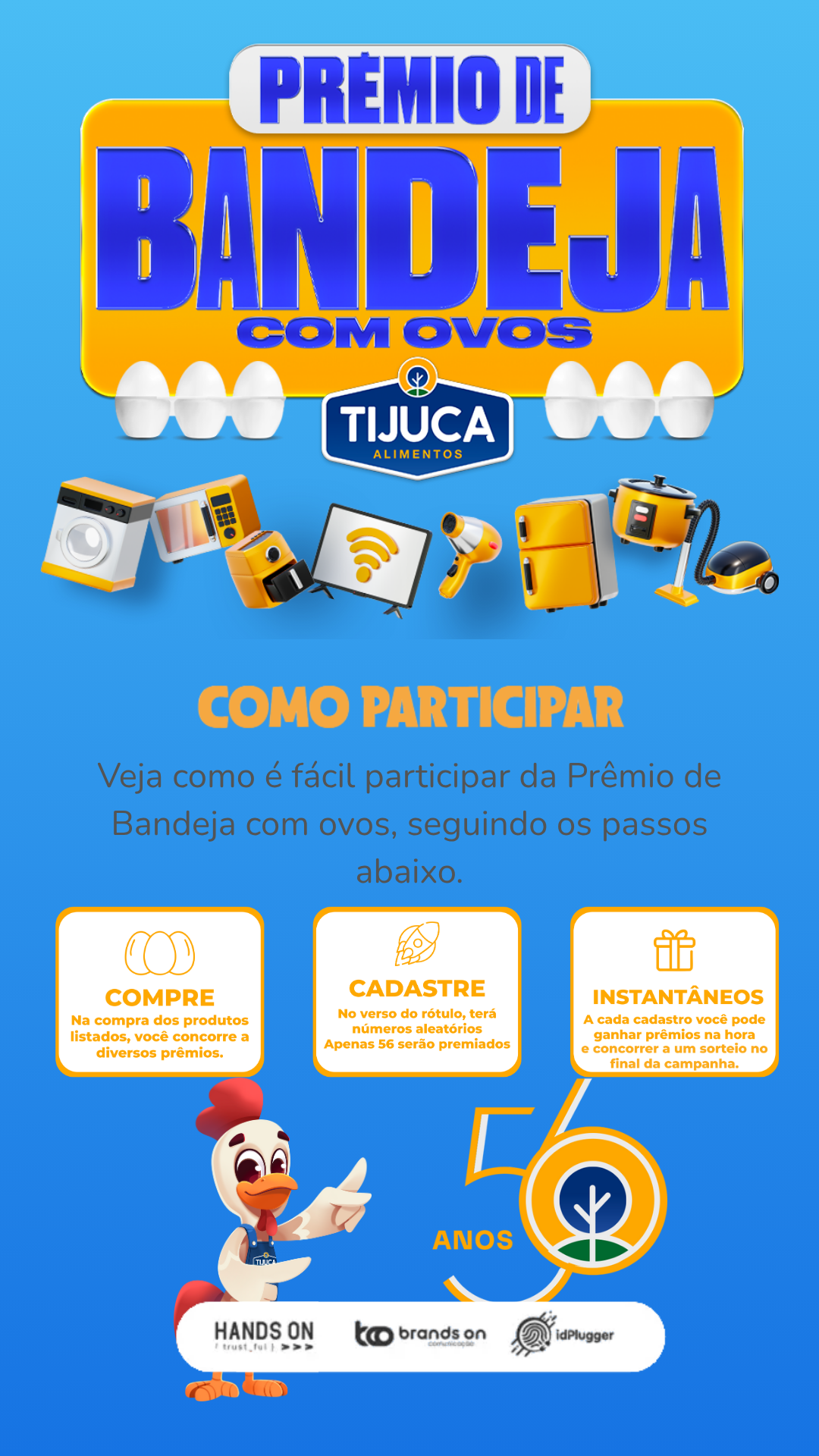 A Tijuca Alimentos, em parceria com a idPlugger, apresenta a promoção “Prêmio de Bandeja com Ovos Tijuca”, criada para celebrar os 56 anos da marca. A campanha envolve os consumidores em uma dinâmica interativa e divertida, com prêmios instantâneos e sorteios finais, reforçando o vínculo emocional com o público das regiões onde a marca nasceu e cresceu.