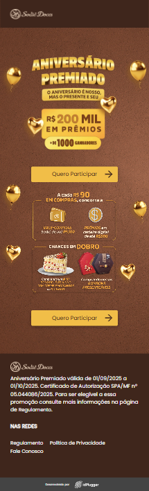 A Sodiê Doces, em parceria com a idPlugger, apresenta a promoção “Aniversário Premiado”, uma campanha nacional que celebra o aniversário da marca com prêmios para seus clientes. Com mais de R$ 200 mil em prêmios e mais de mil ganhadores, a ação transforma o momento da compra em uma experiência envolvente e recompensadora.