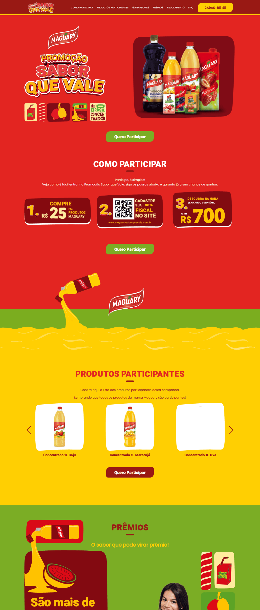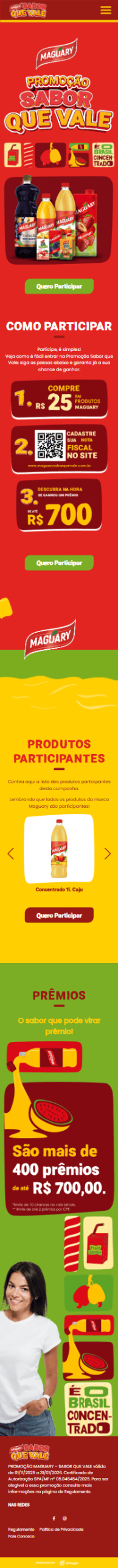 A promoção Maguary – Sabor que Vale foi criada para incentivar o consumo da linha de produtos participantes e distribuir mais de 400 prêmios instantâneos de até R$ 700,00. A IdPlugger desenvolveu o hotsite e toda a plataforma de cadastro e gestão da campanha, garantindo operação simples e segura.