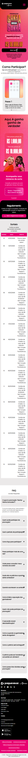 Os sorteios ocorrem semanalmente, com prêmios de R$1.000,00, e mensalmente com um prêmio de R$10.000,00.