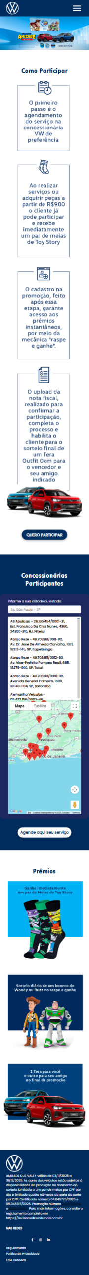 Após o serviço, cadastro na plataforma promocional para acesso à mecânica raspe e ganhe, com possibilidade de ganhar prêmios instantâneos e concorrer diariamente a bonecos Woody ou Buzz.
