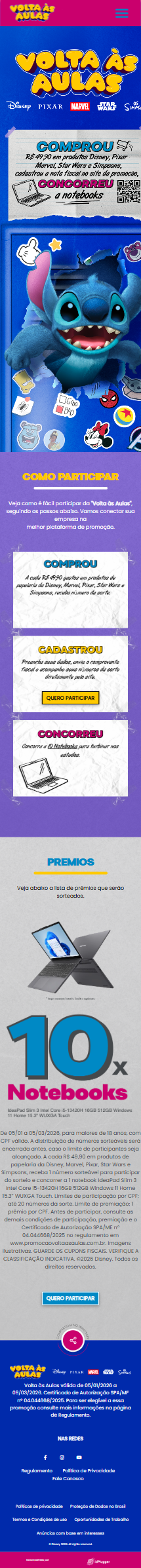 Participação condicionada à compra de produtos de papelaria das marcas Disney, Marvel, Pixar, Star Wars e Simpsons durante o período da campanha.